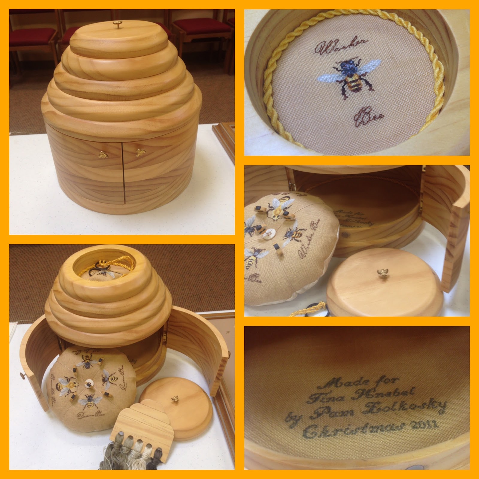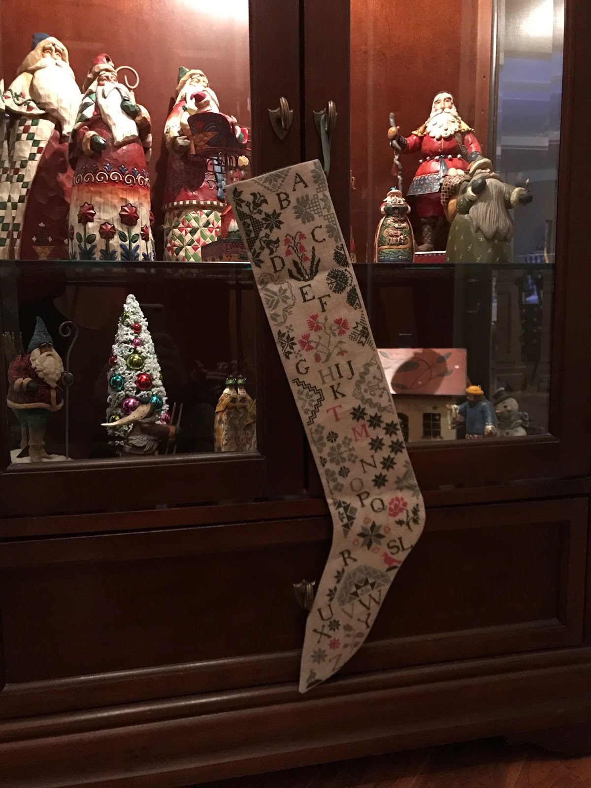 I also want to show you a beautiful gift I received from my friend Judy. She is an amazing stitcher and always makes the most beautiful things for our guild auction. I was flabbergasted when she made this for me. Isn't it beautiful? It is an old Carriage House Samplings pattern, 'A Quaker Stocking', and she finished it beautifully! It will also hang in my home, year round.